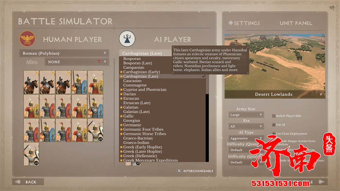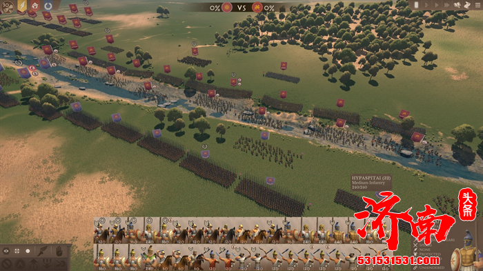 游戏玩法:定位为即时战术战争游戏,核心围绕古典时代军队的大规模作战展开。玩家可指挥跨越千年历史的军队,重现希波战争、罗马扩张等时期的真实战役,或通过自定义模式创建专属战斗——可自由筛选势力、调整军队规模、设定地图与难度,支持热座模式与电脑对战。游戏融入复杂的战争机制,涵盖编队移动、士气动摇、战争迷雾、地形影响、包抄战术等元素,玩家需合理规划将军位置、派遣信使、调配兵力,在千军万马的战场中掌控战局。