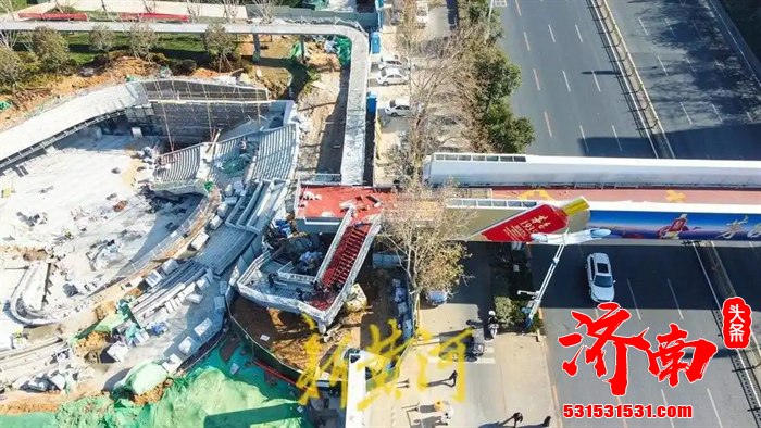 1月9日,随着济南地铁4号线的开通运营,与其配套的一系列城市基础设施提升工程也同步展开。位于济南市儿童医院东侧的过街天桥于同日启动封闭改造,将从一个单一的过街设施,转变为连接城市慢行系统与公共文化空间的“空中纽带”。