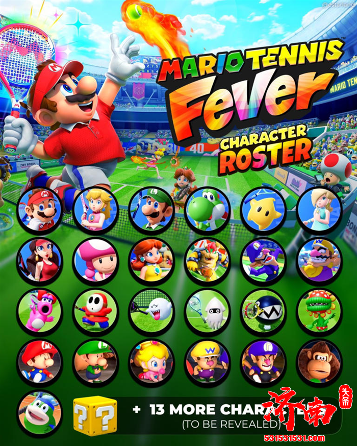 任天堂近日确认,即将于2026年2月12日在Switch2平台发售的《马里奥网球:狂热》将包含系列历史上最多的可选角色阵容,总计达到38名。